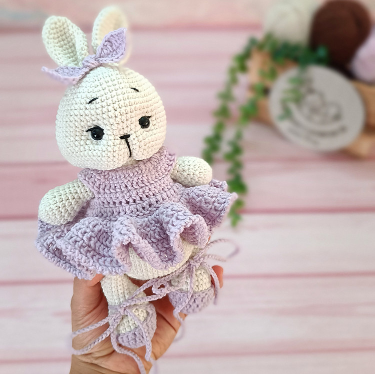 عروسک بافتنی خرگوش بافته شده با کاموای ترک بدون پرزدهی و ضدحساسیت