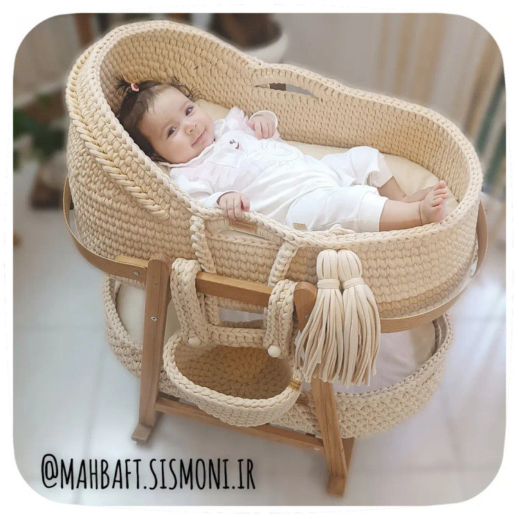 ست گهواره تریکویی و کریر تعویض پوشک و آویز تخت نوزاد