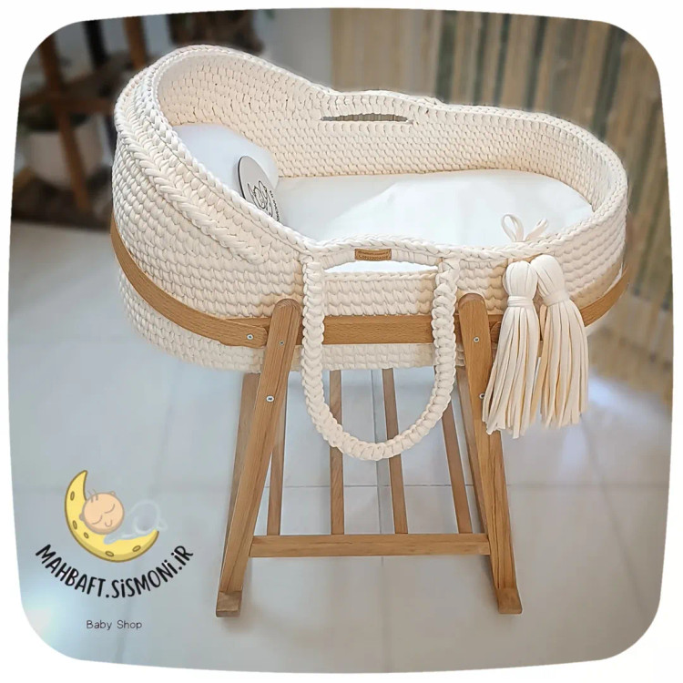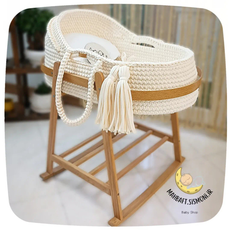 این یه کریر دست بافته و با پایه چوبی میشه یه گهواره یا تخت کنار مادر که تا نه ماهگی کوچولوتون میتونین ازش استفاده کنین.