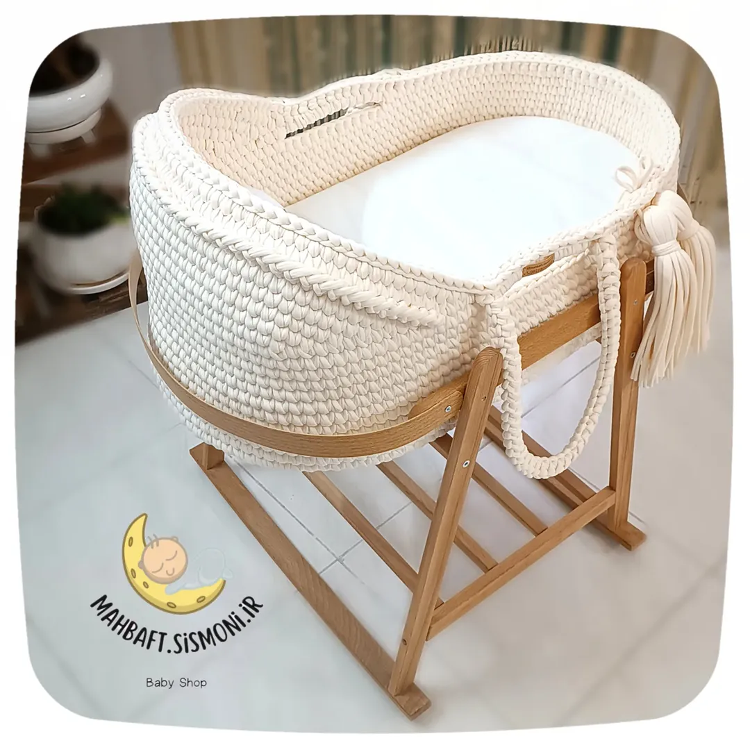این یه کریر دست بافته و با پایه چوبی میشه یه گهواره یا تخت کنار مادر که تا نه ماهگی کوچولوتون میتونین ازش استفاده کنین.