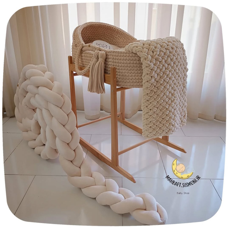 کریر تریکویی نوزاد و پایه چوبی راش گرجستان به همراه تشک و بالشت کتان