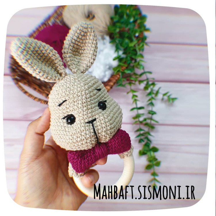 جغجغه ی بافتنی دسته چوبی مدل خرگوشی پسرانه