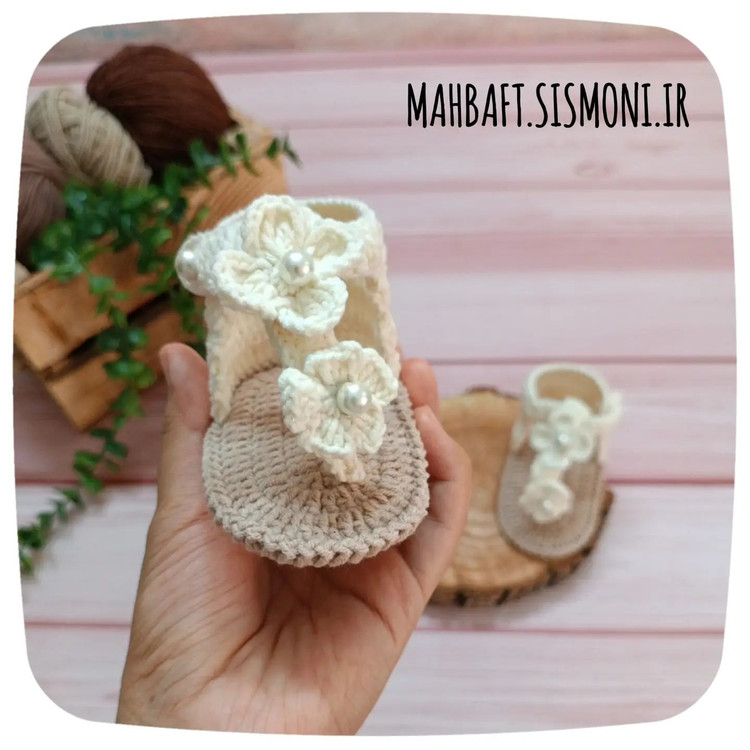 پاپوش بافتنی مجلسی دخترانه سایز 6 ماه
